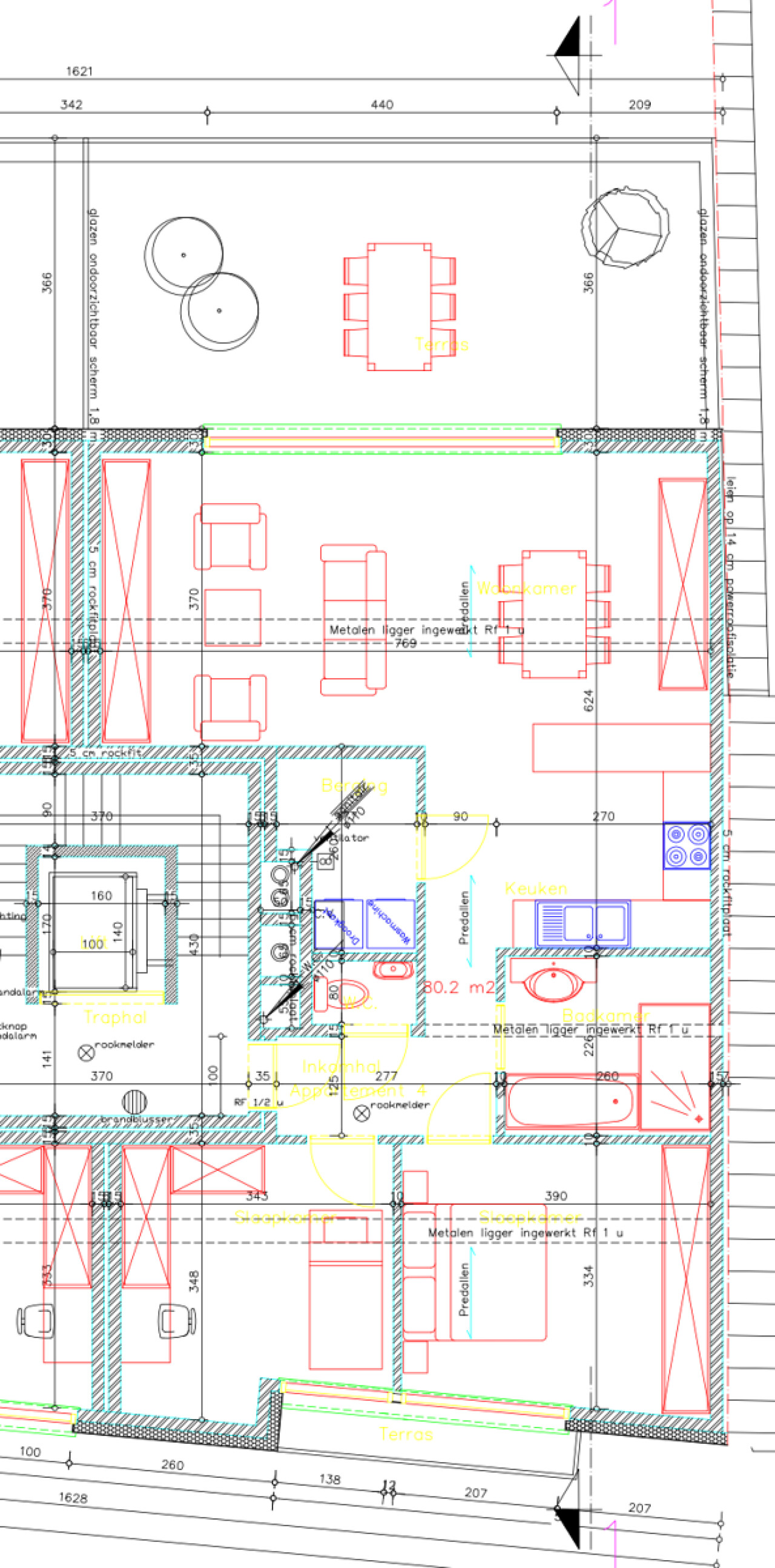 Op de 2de verdieping is een luxe penthouse met zowel voor-als achteraan een terras over de volledige breedte van het gebouw. Dit is werkelijk een parel voor iedereen.
