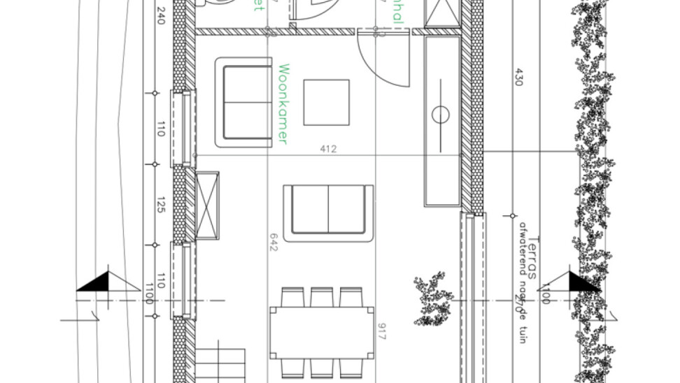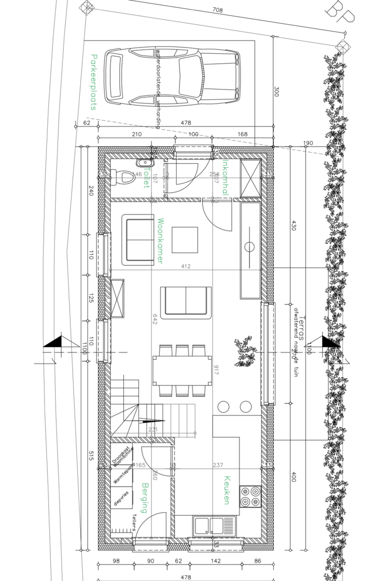 Via de inkomhal, met gastentoilet kom je in de ruime leefruimte met open keuken. Aanpalend hieraan is een berging/wasplaats die je toegang geeft tot de tuin. Vanuit de eethoek heb je zicht op het achterliggend terras en tuin.