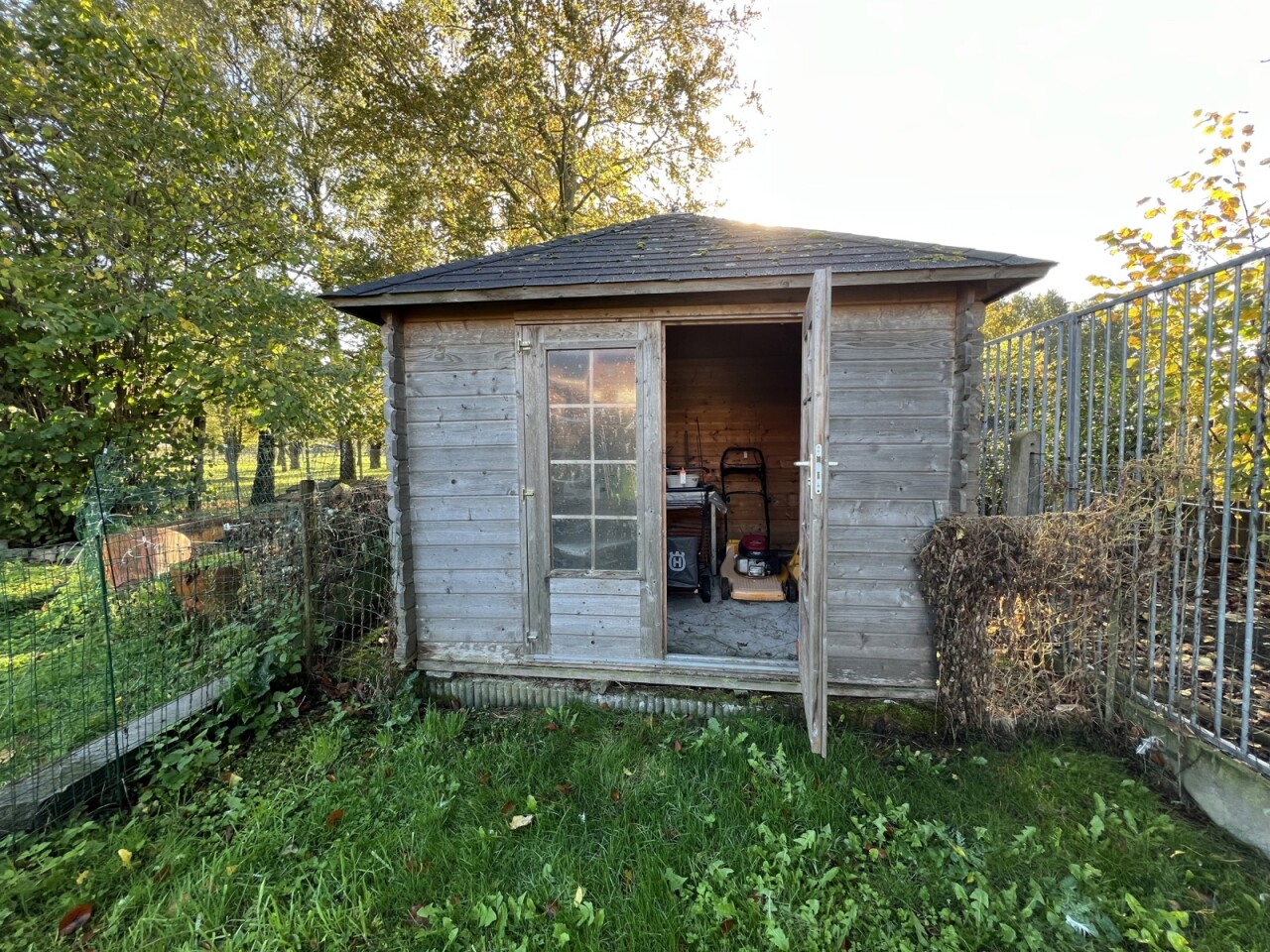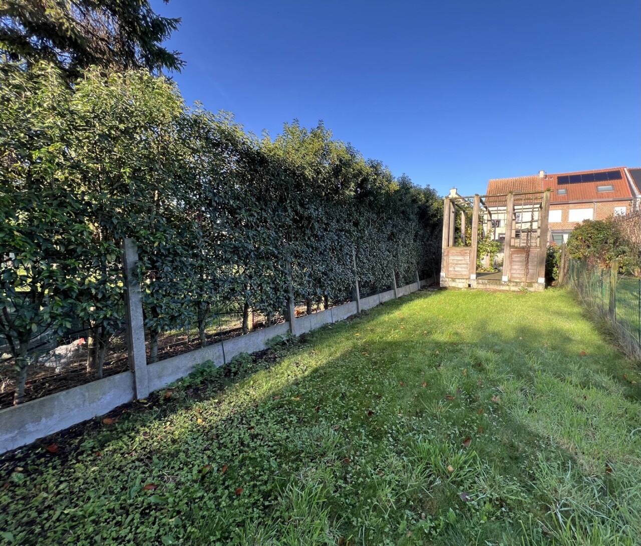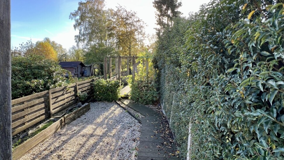 Er is een afzonderlijke gang aanwezig, die toegang geeft tot de woning en de tuin.